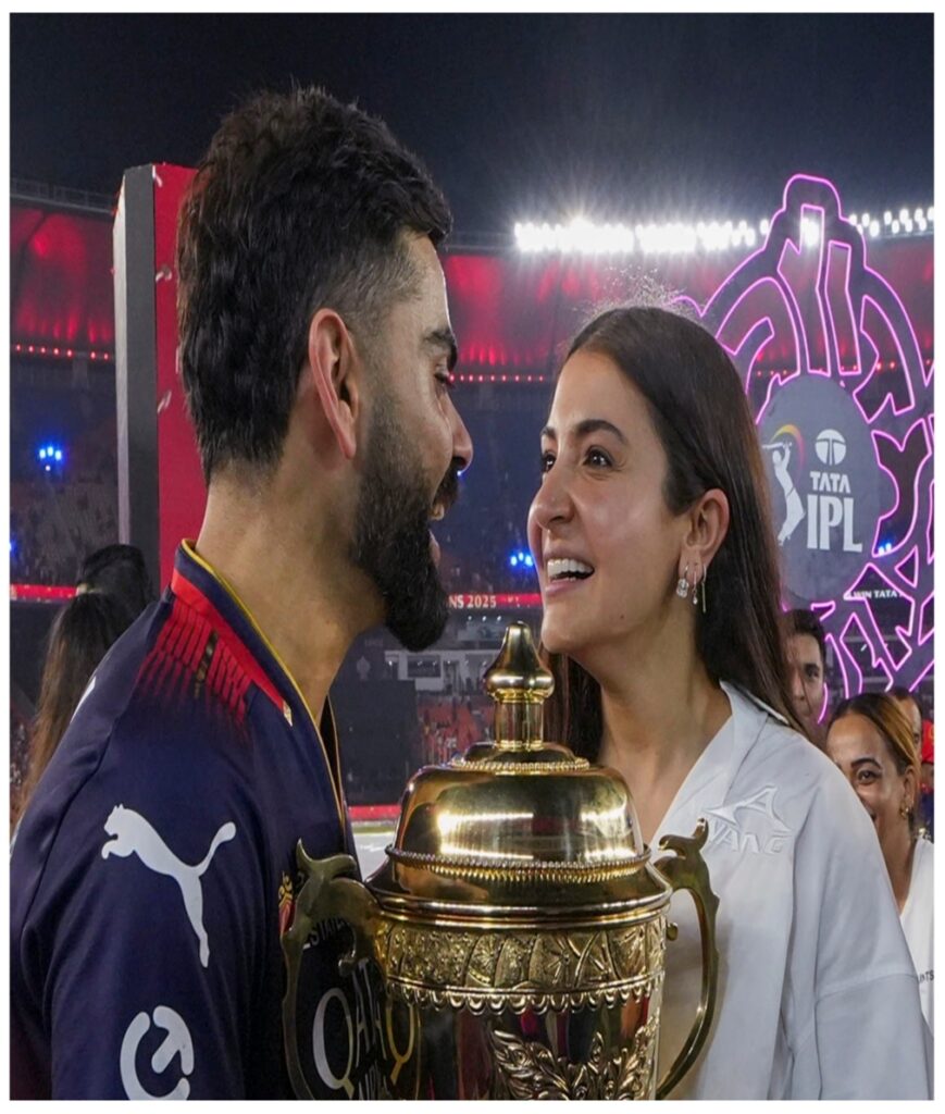 आरसीबी ने आखिरकार अपना पहला इंडियन प्रीमियर लीग खिताब जीत लिया। इस फ्रैंचाइज़ी ने नरेंद्र मोदी स्टेडियम में एक रोमांचक आईपीएल 2025 के फाइनल में पंजाब किंग्स को छह रनों से हराया, जिससे प्रशंसक जश्न मनाने लगे और विराट कोहली की आंखों में आंसू आ गए। जैसे ही अंतिम गेंद हिट हुई और जीत पक्की हो गई, कोहली भावुक होकर जमीन पर गिर पड़े। कुछ ही क्षणों बाद आंसुओं से लथपथ अपने पति को अनुष्का शर्मा ने कसकर गले लगाया। विराट के चेहरे पर आंसू बह रहे थे स्टेडियम में लगे कैमरों के शटर इस जोड़े के बीच के पल को कैद करने के लिए पूरी तरह से तैयार थे, एक ऐसा पल जो आने वाले सालों में भारत की पॉप-संस्कृति के इतिहास में अपनी छाप छोड़ेगा। विराट के लिए, यह पल टेस्ट क्रिकेट से संन्यास लेने की घोषणा के कुछ हफ़्ते बाद आया। कोई केवल कल्पना कर सकता है कि उस समय कोहली के दिमाग में कितनी उपलब्धि की भावना चल रही होगी। पिछले कुछ सालों में, RCB ने एक वफ़ादार प्रशंसक वर्ग तैयार किया है जो खेल दर खेल और सीज़न दर सीज़न टीम के साथ खड़ा रहा है। लगभग दो दशकों के बाद पहली जीत के साथ, यह उनके लिए बहुत फायदेमंद रहा है। संयोग से, अनुष्का और आईपीएल दोनों ही डेब्यू वर्ष साझा करते हैं।
