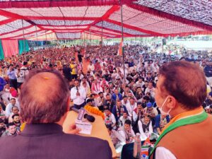 ओर वहीं भाजपा सरकार को जुमलों की पार्टी बताकर कहा कि न तो आजतक किसी के खाते में 15-15 लाख रुपये आये।