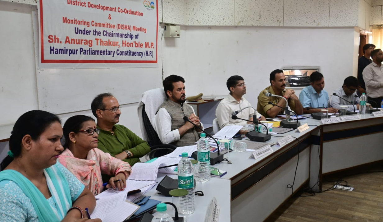 केंद्रीय सूचना प्रसारण एवं खेल मंत्री अनुराग सिंह ठाकुर ने ऊना जिला के दौरे के दौरान सोमवार को जिला विकास, समन्वय एवं अनुश्रवण समिति (दिशा) की बैठक में शिरकत की। जिला मुख्यालय स्थित बचत भवन में आयोजित दिशा की बैठक में केंद्रीय मंत्री अनुराग ठाकुर ने प्रशासनिक और विभिन्न विभागों के अधिकारीयों से जिला में केंद्र सरकार द्वारा संचालित विकासात्मक योजनाओं का फीडबैक लिया। वहीं, केंद्रीय मंत्री ने विभिन्न विभागों के अधिकारीयों से केंद्र सरकार द्वारा चलाई जा रही कल्याणकारी योजनाओं का लाभ जरुरतमंदो तक पहुंचाने का आहवान भी किया।