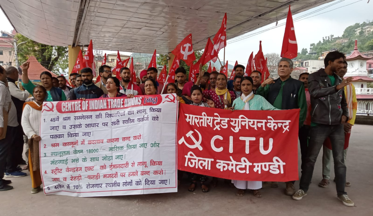 सोमवार को मंडी शहर के ऐतिहासिक सेरी मंच पर सीटू के जिला पदाधिकारियों व सीटू से जुड़े विभिन्न संगठनों द्वारा मई दिवस मनाया गया। इस दिन को पूरे विश्व में अंतरराष्ट्रीय मजदूर दिवस के रूप में मनाया जाता है।