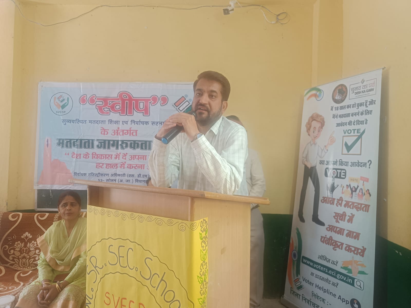 इस अवसर पर स्वीप नोडल अधिकारी राजेश ठाकुर व हेमेंद्र शर्मा ने 18 वर्ष की उम्र पूरी करने वाले युवाओं को मत बनाने के लिए वोटर हेल्पलाइन ऐप व बी.एल.ओ. के माध्यम अपनाई जाने वाली प्रक्रिया से बारे पूर्ण जानकारी दी गई। उन्होंने मतदान केंद्र पर मिलने वाली सुविधाओं के बारे में जैसे व्हील चेयर, कतार रहित मतदान इत्यादि के बारे में भी अवगत करवाया।