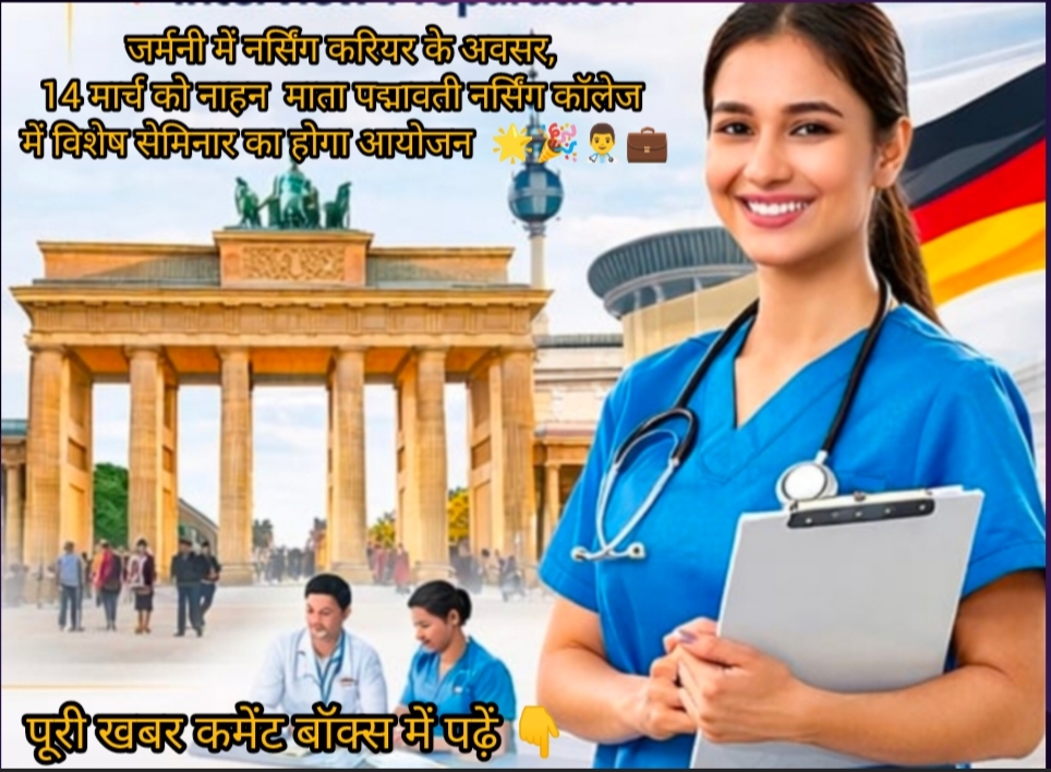 नाहन में नर्सिंग क्षेत्र में विदेश में करियर बनाने के इच्छुक युवाओं और नर्सिंग छात्रों के लिए कल 14 मार्च को एक विशेष सेमिनार आयोजित किया जा रहा है। इस सेमिनार का उद्देश्य युवाओं को जर्मनी में नर्सिंग करियर से जुड़े अवसरों और प्रक्रियाओं की जानकारी देना है।