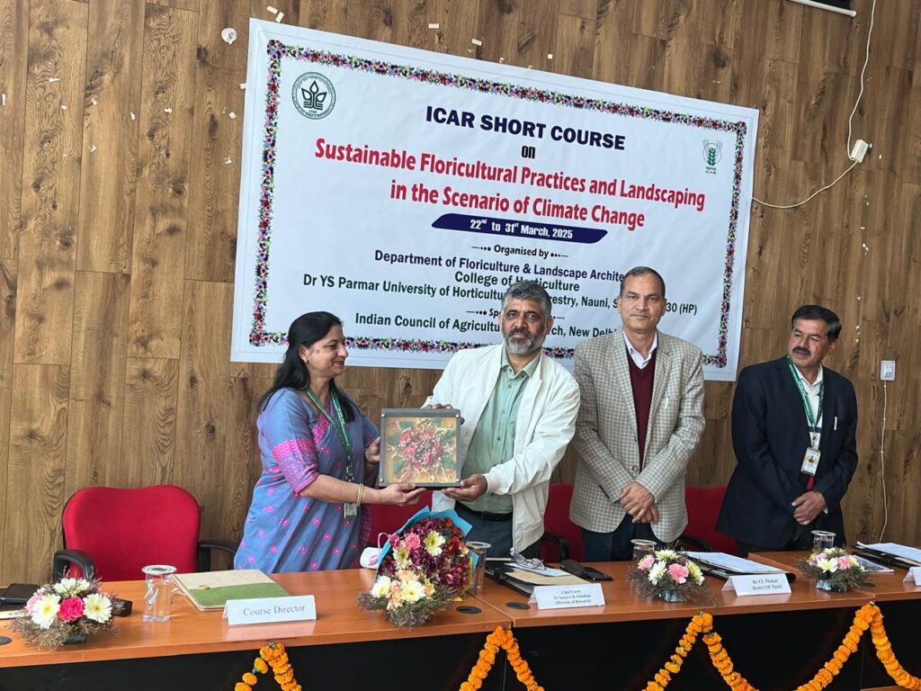 वैश्विक जलवायु परिवर्तन के प्रभावों को ध्यान में रखते हुए डॉ. यशवंत सिंह परमार औद्यानिकी एवं वानिकी विश्वविद्यालय, नौणी में जलवायु परिवर्तन के परिदृश्य में टिकाऊ पुष्प कृषि पद्धतियां और भूनिर्माण विषय पर 10 दिवसीय राष्ट्रीय प्रशिक्षण कार्यक्रम का शुभारंभ किया गया। यह कार्यक्रम भारतीय कृषि अनुसंधान परिषद (ICAR) द्वारा प्रायोजित है और इसका उद्देश्य देशभर के वैज्ञानिकों, शोधकर्ताओं एवं कृषि विशेषज्ञों को पर्यावरण अनुकूल पुष्प विज्ञान एवं साज-सज्जा की टिकाऊ तकनीकों से प्रशिक्षित करना है।