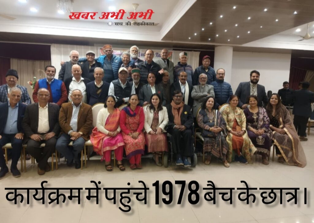 राजकीय डिग्री कॉलेज सोलन के 1978 बैच के पूर्व छात्रों ने स्थानीय होटल में “एक रंगीन शाम दोस्तों के नाम” कार्यक्रम का आयोजन किया। इस यादगार मिलन समारोह में सेवानिवृत आईएएस अधिकारी मदन चौहान और सेवानिवृत एचएएच सुभाष सकलानी विशेष अतिथि के रूप में उपस्थित रहे।