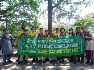 पर्यावरण के ऊपर एक कविता पढ़ी पाइनग्रो इको क्लब के प्रभारी नरदेव सिंह द्वारा पर्यावरण को कैसे बचाया जाए व पर्यावरण के महत्व के बारे में बच्चों को जागरूक किया गया । इसके पश्चात विद्यालय में इंटर हाउस क्विज प्रतियोगिता का आयोजन किया गया इस क्विज़ में क्विज मास्टर नरदेव सिंह द्वारा बच्चों से पर्यावरण, जैवविविधता,प्रदूषण , मशहूर पर्यावरणविदों से संबंधित प्रश्न पूछे गए इस प्रतियोगिता में हंसराज हाउस व टैगोर हाउस क्रमशः प्रथम व द्वितीय स्थान पर रहे और अंत में पाइनग्रो इको क्लब के सदस्यों द्वारा अध्यापक दिग्विजय व नमन कश्यप के निर्देशानुसार रानीताल बाग की सफाई की तथा लोगों को पर्यावरण संरक्षण के बारे में जागरूक किया।
