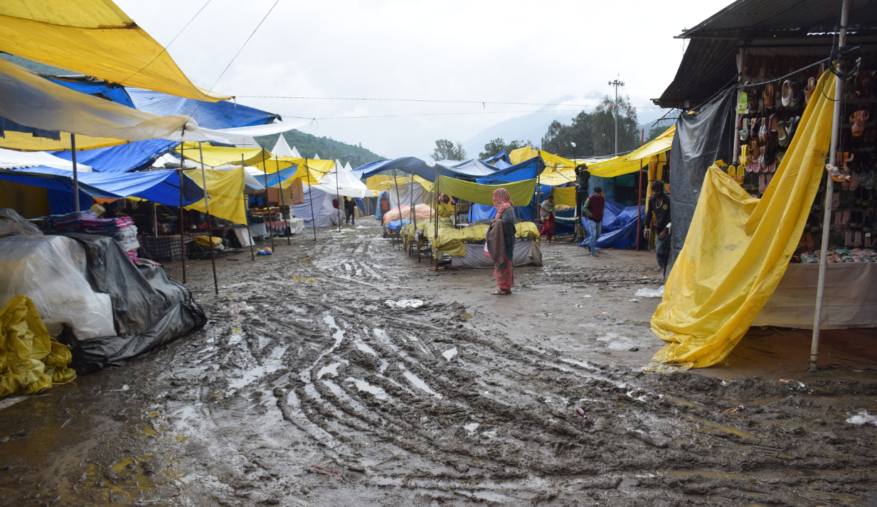 जिला कुल्लू के मुख्यालय ढालपुर के मेला मैदान में पीपल मेले के बाद भी अस्थाई दुकानें सजी हुई है। लेकिन खराब मौसम के चलते मेला मैदान खाली नज़र आ रहा है। मेले में खरीदारी करने के लिए लोग भी नहीं आ रहे है। मेले में आए दुकानदारों का कहना है कि वह कर्जा लेकर यहां मेले में कुछ कमाई करने आए थे। लेकिन लगातार हो रही बारिश से उन्हें नुकसान उठाना पड़ रहा है। बारिश होने के चलते लोग खरीदारी करने के लिए भी नहीं पहुंच रहे हैं।
