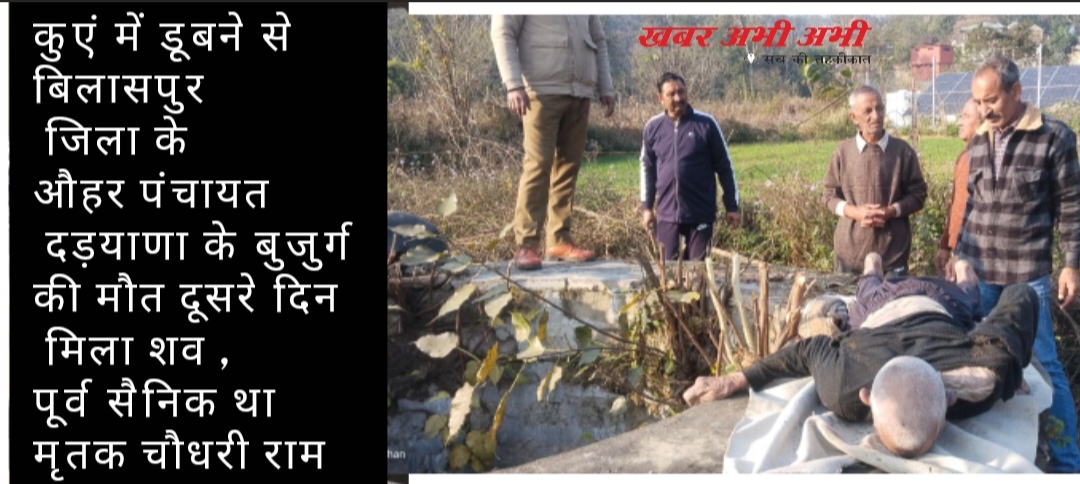 घुमारवीं थाना क्षेत्र के अंतर्गत ग्राम पंचायत औहर के गांव दड़याणा में एक दर्दनाक घटना सामने आई है। गांव निवासी चौधरी राम (85) पुत्र लाभूराम, जो कि आर्मी से सेवानिवृत्त थे, की कुएं में डूबने से मौत हो गई। उनका शव घर के समीप स्थित कुएं में तैरता हुआ मिला।