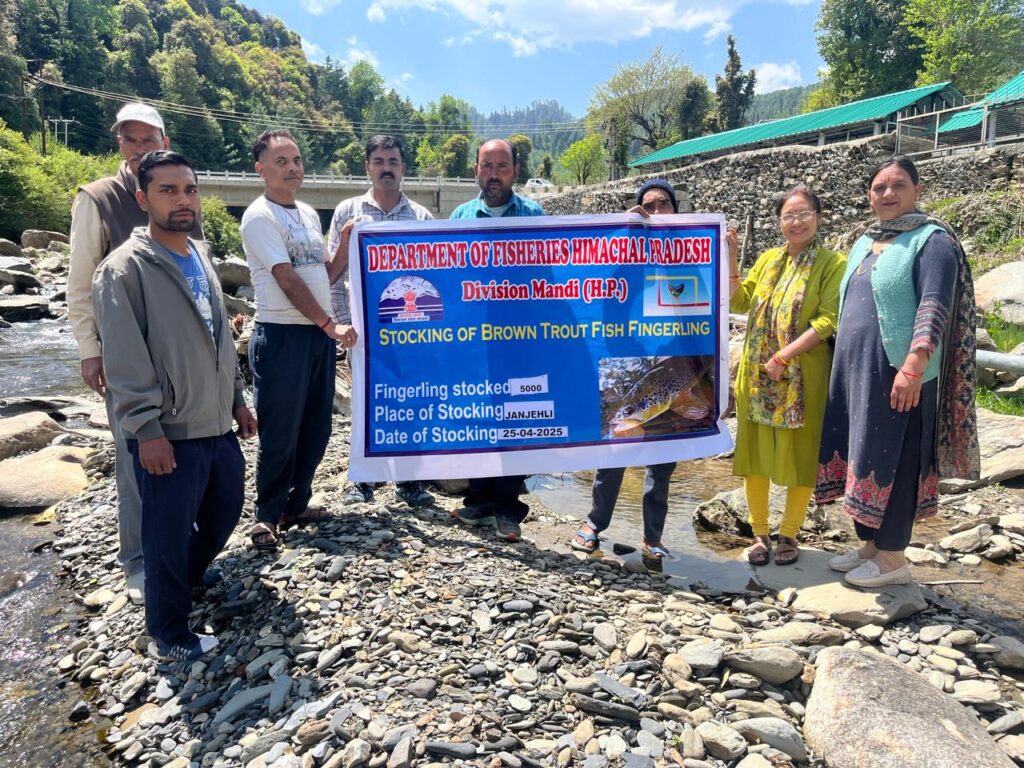 मंडी जिला के जंजैहली में आज भाखली खड्ड में 5000 ब्राउन ट्राउट फिंगरलिंग्स का सफलतापूर्वक संग्रहण किया गया। यह जानकारी सहायक निदेशक, मत्स्य मंडल मंडी नीतू सिंह ने दी।