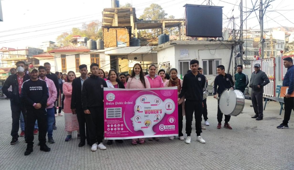 सोलन पब्लिक स्कूल (एसपीएस) में महिला दिवस के मौके पर वूमैन इंपॉवरमेंट विषय को लेकर पिंक वॉक का आयोजन किया गया। इसमें स्कूली बच्चों, स्कूल स्टाफ और अभिभावकों ने हिस्सा लिया। सोलन शहर के ओल्ड डीसी ऑफिस चौक से शुरू हुआ यह मार्च स्कूल कैंपस तक पहुंचा। इस वॉक में भाग लेने वाले सभी प्रतिभागियों को पिंक रिस्ट बैंड लगाया और महिलाओं को पिंक बिंदी लगाई गई।