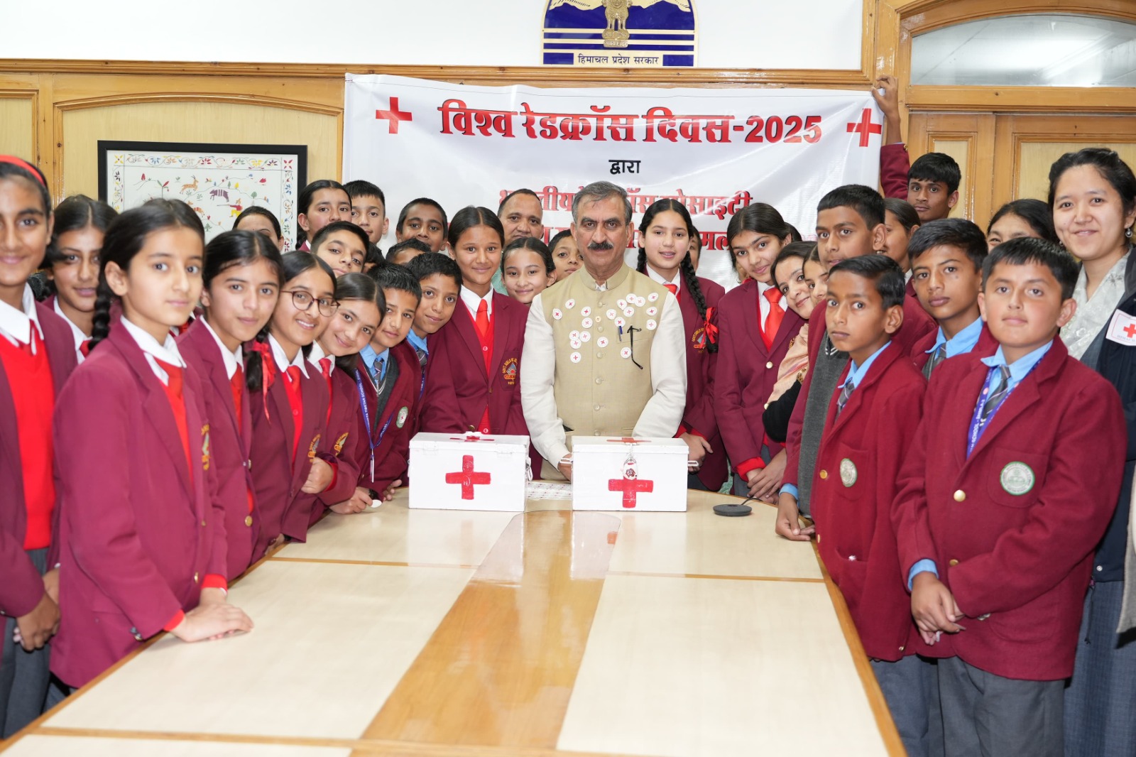 शिमला विश्व रेडक्रॉस दिवस-2025 के अवसर पर मुख्यमंत्री ठाकुर सुखविंद्र सिंह सुक्खू से आज यहां बच्चों और रेडक्रॉस स्वयंसेवकों ने भेंट की। इस अवसर पर उन्होंने मुख्यमंत्री को रेडक्रॉस के स्टिकर भेंट किए। मुख्यमंत्री ने रेडक्रॉस कोष में योगदान दिया और लोगों से भी इस कोष में उदारतापूर्वक अंशदान का आह्वान किया।