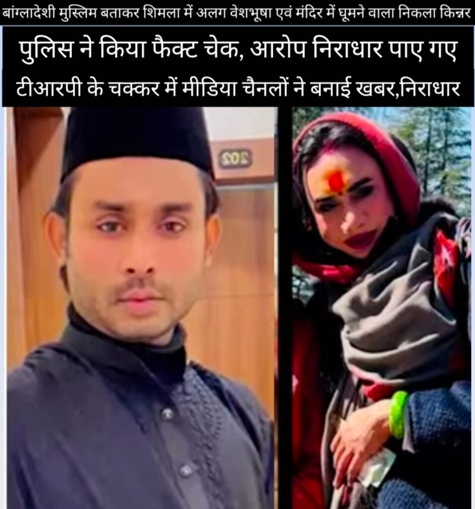 शिमला में संदिग्ध गतिविधियों बांग्लादेशी मुसलमान मंदिरों में घूमने वाले की शिकायत का पुलिस ने किया फैक्ट चेक, आरोप निराधार पाए गए