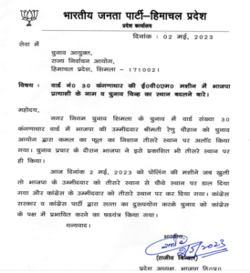 # शिमला वार्ड नंबर 28 और 30 की ईवीएम मशीन में भाजपा प्रत्याशी के नाम व चुनाव चिन्ह का स्थान बदला: राजीव बिंदल