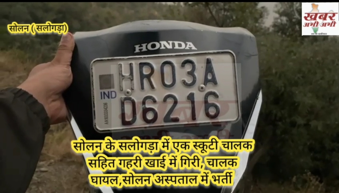 हरियाणा नंबर की स्कूटी (HR 03A D 6216) अनियंत्रित होकर लगभग 50 मीटर गहरी खाई में जा गिरी।
