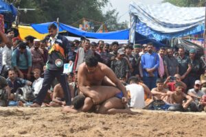 राजगढ, 17 अप्रैल – जिला स्तरीय तीन दिवसीय बैशाखी मेले के अन्तिम दिन रविवार को विशाल दंगल प्रतियोगिता का आयोजन किया गया। इस प्रतियोगिता में प्रवेश चौहान आढ़ती दिल्ली ने बतौर मुख्य अतिथि शिकरत की और दंगल का शुभारंभ किया।