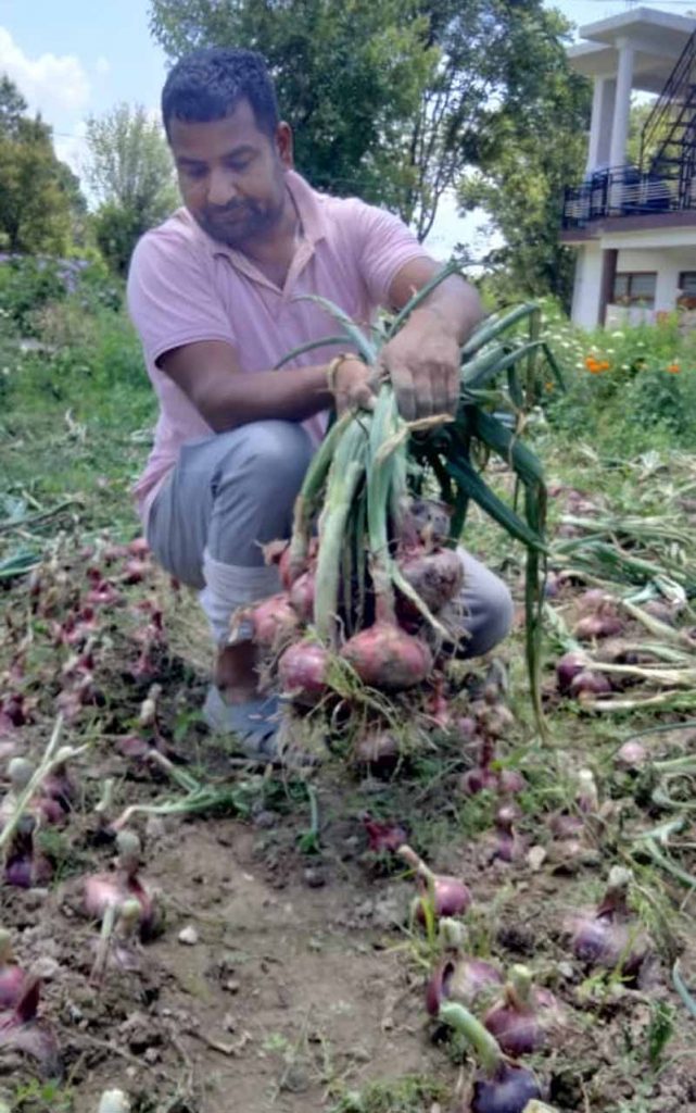 कंद्रेहड़ पंचायत के पटौला गांव में खेती पर रिसर्च करने वाले बलवीर सैणी ने बताया कि उन्होंने बिना अंग्रेजी खाद के खुले खेत में कच्ची मेेंढ़ पर ये प्याज उगाए हैं। सैणी ने इसमें 35 क्विंटल प्याज कच्चा (ग्रीन) ही बेच दिया था। कच्चे प्याज के उन्हें 35 रुपए प्रति किलो के मिले हैं। सूखे प्याज के उन्हें 20 रुपए प्रति किलो मिल रहे हैं। बेशक इस प्याज का साइज बड़ा है,लेकिन देसी खाद के चलते इसमें खूब रस है। मार्केट में यह हाथों हाथ बिक रहा है। गौर रहे कि बलवीर सैणी को प्रदेश का अग्रणी मीडिया हाउस दिव्य हिमाचल कुछ साल पहले एक्सीलेंस अवार्ड से सम्मानित कर चुका है।