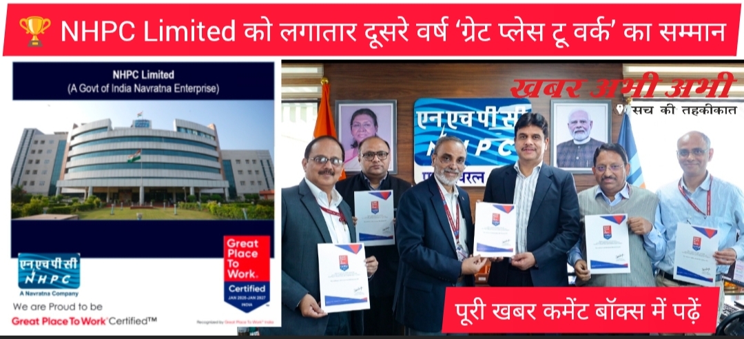 рднрд╛рд░рдд рд╕рд░рдХрд╛рд░ рдХрд╛ рдирд╡рд░рддреНрди рдЙрджреНрдпрдо NHPC рд▓рд┐рдорд┐рдЯреЗрдб рдиреЗ рдкрд┐рдЫрд▓реЗ рд╡рд░реНрд╖ рдХреА рддреБрд▓рдирд╛ рдореЗрдВ рдмреЗрд╣рддрд░ рдЯреНрд░рд╕реНрдЯ рдЗрдВрдбреЗрдХреНрд╕ рд╕реНрдХреЛрд░ рдкреНрд░рд╛рдкреНрдд рдХрд░рддреЗ рд╣реБрдП рдЬрдирд╡рд░реА 2026 рд╕реЗ рдЬрдирд╡рд░реА 2027 рдХреА рдЕрд╡рдзрд┐ рдХреЗ рд▓рд┐рдП рд▓рдЧрд╛рддрд╛рд░ рджреВрд╕рд░реЗ рд╡рд░реНрд╖ рдкреНрд░рддрд┐рд╖реНрдард┐рдд тАШрдЧреНрд░реЗрдЯ рдкреНрд▓реЗрд╕ рдЯреВ рд╡рд░реНрдХтАЩ рдкреНрд░рдорд╛рдгрди рд╣рд╛рд╕рд┐рд▓ рдХрд┐рдпрд╛ рд╣реИред