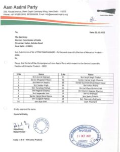 #आम आदमी पार्टी ने जारी की अपने स्टार प्रचारकों की लिस्ट*