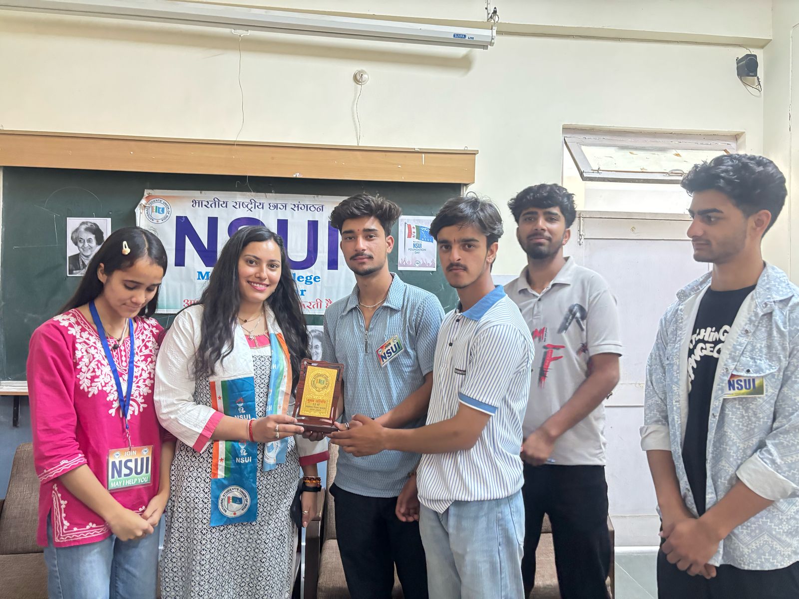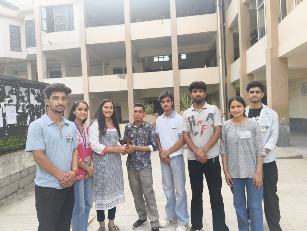 भारतीय छात्र संगठन (NSUI) का 55वां स्थापना दिवस है। इस अवसर पर, NSUI ने “आभार-2025” कार्यक्रम का आयोजन किया, जिसमें कॉलेज के सफाईकर्मियों और सुरक्षा गार्ड्स का सम्मान किया गया तथा महाविद्यालय के प्रिंसिपल सर को और अन्य स्टाफ मेंबर्स को मिठाई बांट कर शुभ कामनाएं दीं।